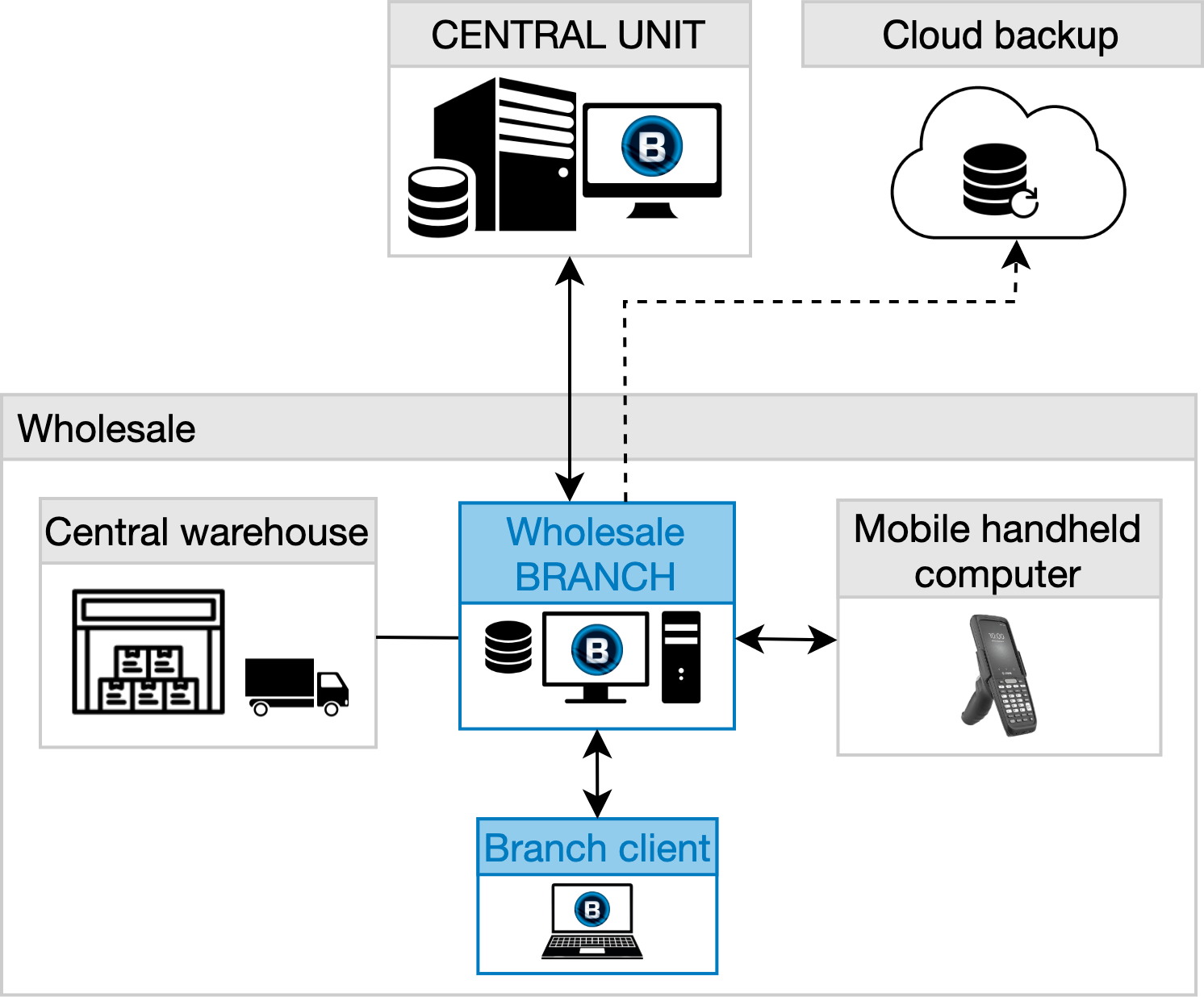 The B.O.S.S. Enterprise ERP system also includes a comprehensive solution for managing the flow of articles in wholesale distribution centres. A wholesale branch is also a subject to central control by central administration unit and uses the central business conditions and pricing. The wholesale branch often exceeds the scope of functions and adjustments of retail shops.